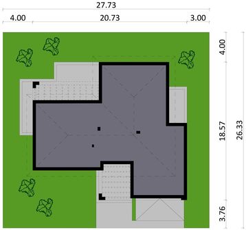 Graficzne opracowanie rzutów poglądowych widocznych na karcie projektu zostało wykonane przez Extradom.pl. Prezentowane przez Extradom.pl wizualizacje wykonane zostały przez autora projektu i należy poczytywać je jedynie za przykład i propozycję wykończenia, wizję architektoniczną autora projektu. Ostateczne wykończenie budynku może nastąpić na wiele sposobów. Szczegółowe rozwiązania zastosowane w oferowanej dokumentacji - w tym również ilość, lokalizacje i wygląd okien, drzwi, kominów - mogą w niewielkim stopniu różnić się od prezentowanej wizualizacji budynku.