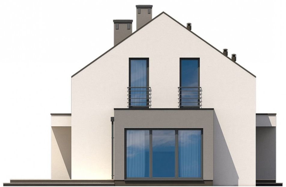 Graficzne opracowanie rzutów poglądowych widocznych na karcie projektu zostało wykonane przez Extradom.pl. Prezentowane przez Extradom.pl wizualizacje wykonane zostały przez autora projektu i należy poczytywać je jedynie za przykład i propozycję wykończenia, wizję architektoniczną autora projektu. Ostateczne wykończenie budynku może nastąpić na wiele sposobów. Szczegółowe rozwiązania zastosowane w oferowanej dokumentacji - w tym również ilość, lokalizacje i wygląd okien, drzwi, kominów - mogą w niewielkim stopniu różnić się od prezentowanej wizualizacji budynku.