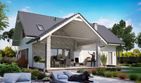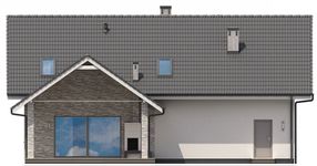 Graficzne opracowanie rzutów poglądowych widocznych na karcie projektu zostało wykonane przez Extradom.pl. Prezentowane przez Extradom.pl wizualizacje wykonane zostały przez autora projektu i należy poczytywać je jedynie za przykład i propozycję wykończenia, wizję architektoniczną autora projektu. Ostateczne wykończenie budynku może nastąpić na wiele sposobów. Szczegółowe rozwiązania zastosowane w oferowanej dokumentacji - w tym również ilość, lokalizacje i wygląd okien, drzwi, kominów - mogą w niewielkim stopniu różnić się od prezentowanej wizualizacji budynku.
