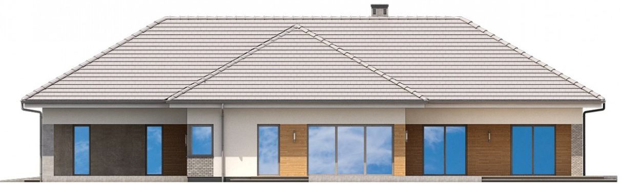 Graficzne opracowanie rzutów poglądowych widocznych na karcie projektu zostało wykonane przez Extradom.pl. Prezentowane przez Extradom.pl wizualizacje wykonane zostały przez autora projektu i należy poczytywać je jedynie za przykład i propozycję wykończenia, wizję architektoniczną autora projektu. Ostateczne wykończenie budynku może nastąpić na wiele sposobów. Szczegółowe rozwiązania zastosowane w oferowanej dokumentacji - w tym również ilość, lokalizacje i wygląd okien, drzwi, kominów - mogą w niewielkim stopniu różnić się od prezentowanej wizualizacji budynku.