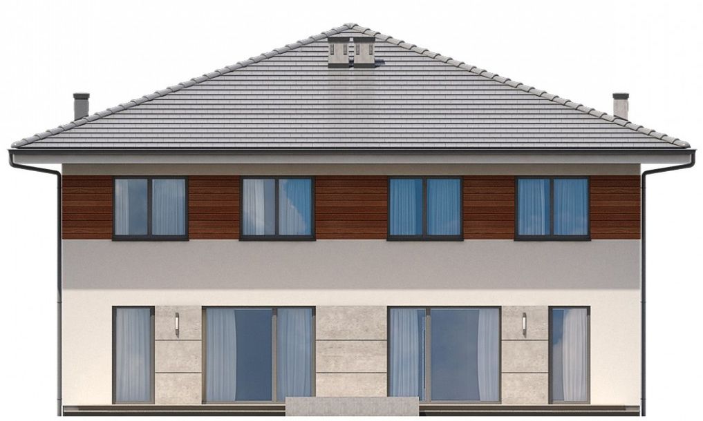 Graficzne opracowanie rzutów poglądowych widocznych na karcie projektu zostało wykonane przez Extradom.pl. Prezentowane przez Extradom.pl wizualizacje wykonane zostały przez autora projektu i należy poczytywać je jedynie za przykład i propozycję wykończenia, wizję architektoniczną autora projektu. Ostateczne wykończenie budynku może nastąpić na wiele sposobów. Szczegółowe rozwiązania zastosowane w oferowanej dokumentacji - w tym również ilość, lokalizacje i wygląd okien, drzwi, kominów - mogą w niewielkim stopniu różnić się od prezentowanej wizualizacji budynku.