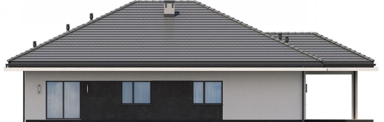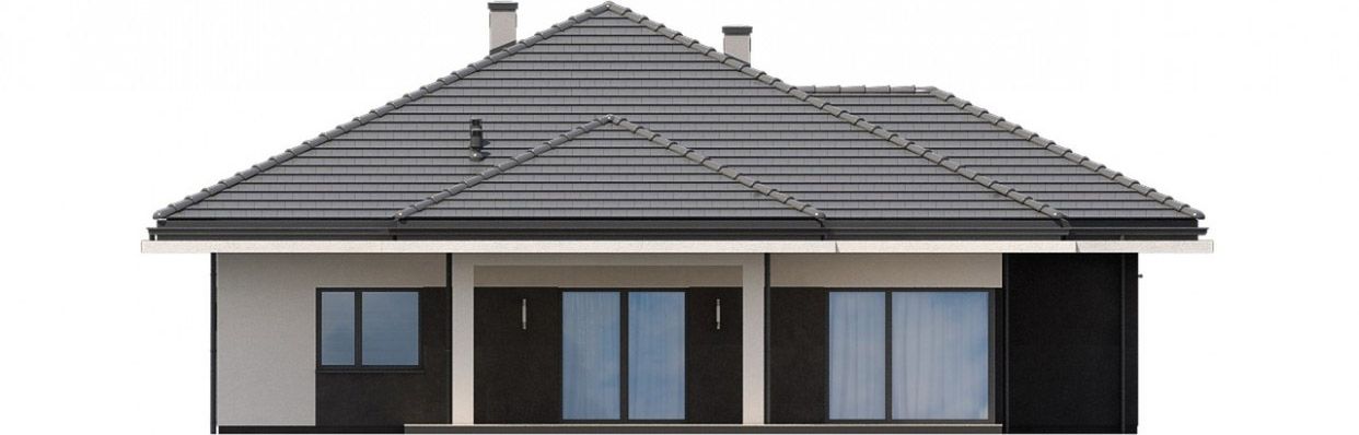 Graficzne opracowanie rzutów poglądowych widocznych na karcie projektu zostało wykonane przez Extradom.pl. Prezentowane przez Extradom.pl wizualizacje wykonane zostały przez autora projektu i należy poczytywać je jedynie za przykład i propozycję wykończenia, wizję architektoniczną autora projektu. Ostateczne wykończenie budynku może nastąpić na wiele sposobów. Szczegółowe rozwiązania zastosowane w oferowanej dokumentacji - w tym również ilość, lokalizacje i wygląd okien, drzwi, kominów - mogą w niewielkim stopniu różnić się od prezentowanej wizualizacji budynku.