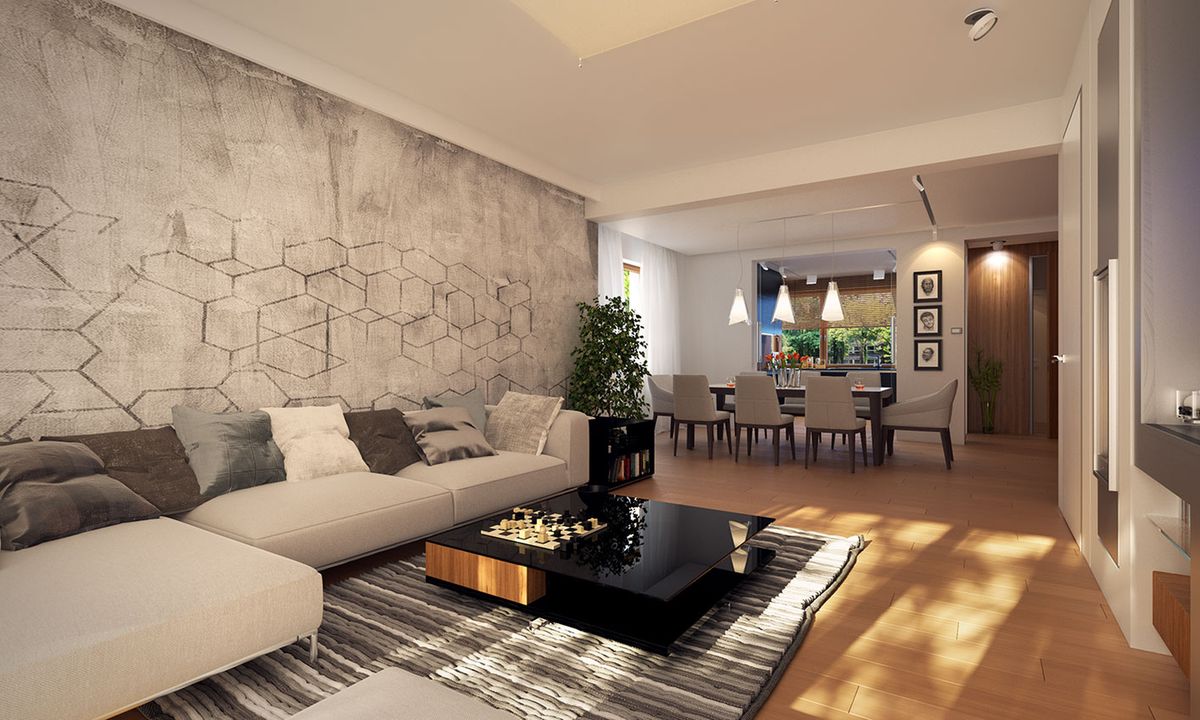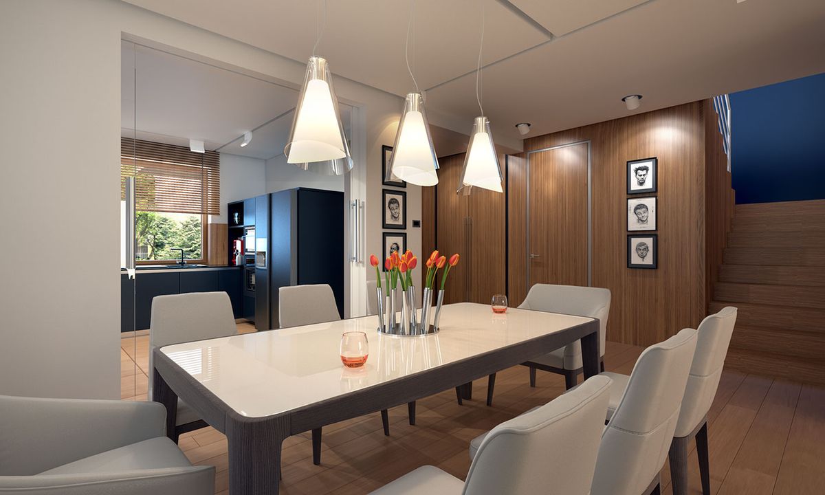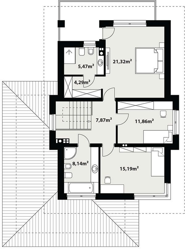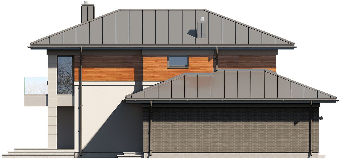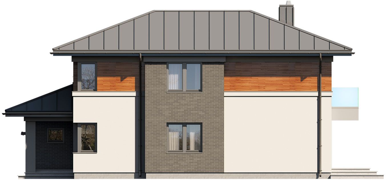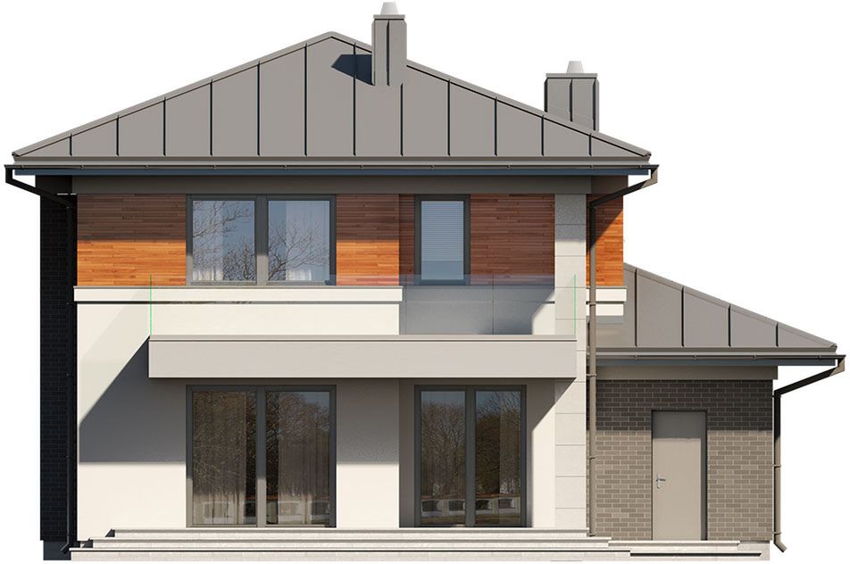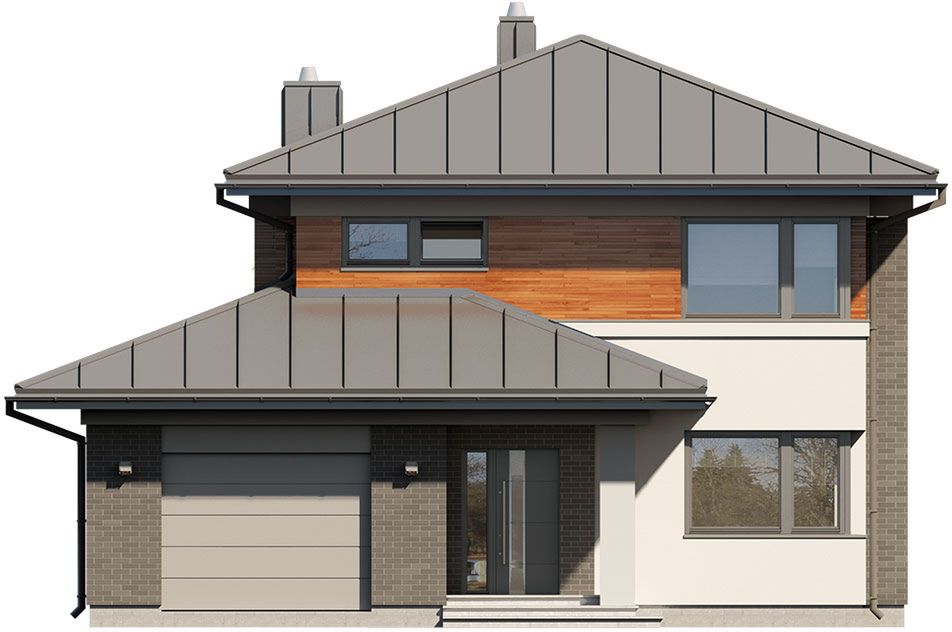 Graficzne opracowanie rzutów poglądowych widocznych na karcie projektu zostało wykonane przez Extradom.pl. Prezentowane przez Extradom.pl wizualizacje wykonane zostały przez autora projektu i należy poczytywać je jedynie za przykład i propozycję wykończenia, wizję architektoniczną autora projektu. Ostateczne wykończenie budynku może nastąpić na wiele sposobów. Szczegółowe rozwiązania zastosowane w oferowanej dokumentacji - w tym również ilość, lokalizacje i wygląd okien, drzwi, kominów - mogą w niewielkim stopniu różnić się od prezentowanej wizualizacji budynku.