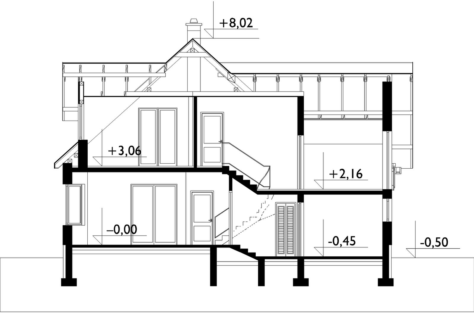 Wersja technologiczna: murowana - beton komórkowy. Strop: żelbetowy monolityczny. Typ schodów: płytowe żelbetowe. Konstrukcja dachu: drewniana krokwiowo-jętkowa. Typ ogrzewania: Kocioł na gaz. Dostępna wersja z pompą ciepła: Tak. Ściany zewnętrzne: 24 cm beton komórkowy. Ściany wewnętrzne: 24 cm bloczki silikatowe. Ściany wewnętrzne działowe: 12 cm bloczki silikatowe.