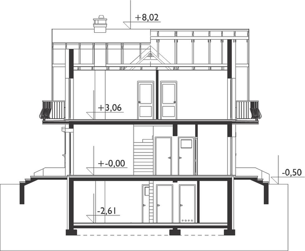 Wersja technologiczna: murowana - beton komórkowy. Konstrukcja dachu: drewniana krokwiowo-jętkowa. Typ schodów: płytowe żelbetowe. Strop: żelbetowy monolityczny. Typ ogrzewania: Kocioł na gaz. Dostępna wersja z paliwem stałym: Tak. Dostępna wersja z pompą ciepła: Tak. Wentylacja: grawitacyjna. Ściany zewnętrzne: 24 cm beton komórkowy. Ściany wewnętrzne: 24 cm beton komórkowy. Ściany wewnętrzne działowe: 12 cm beton komórkowy. Wentylacja: grawitacyjna.