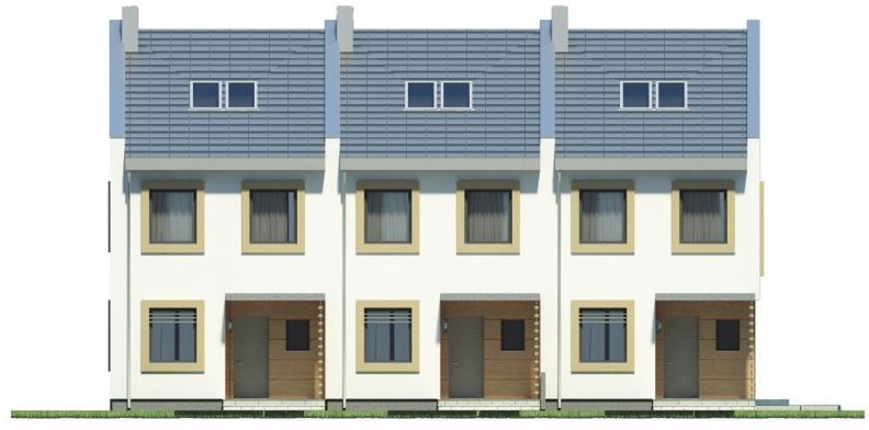 Graficzne opracowanie rzutów poglądowych widocznych na karcie projektu zostało wykonane przez Extradom.pl. Prezentowane przez Extradom.pl wizualizacje wykonane zostały przez autora projektu i należy poczytywać je jedynie za przykład i propozycję wykończenia, wizję architektoniczną autora projektu. Ostateczne wykończenie budynku może nastąpić na wiele sposobów. Szczegółowe rozwiązania zastosowane w oferowanej dokumentacji - w tym również ilość, lokalizacje i wygląd okien, drzwi, kominów - mogą w niewielkim stopniu różnić się od prezentowanej wizualizacji budynku.