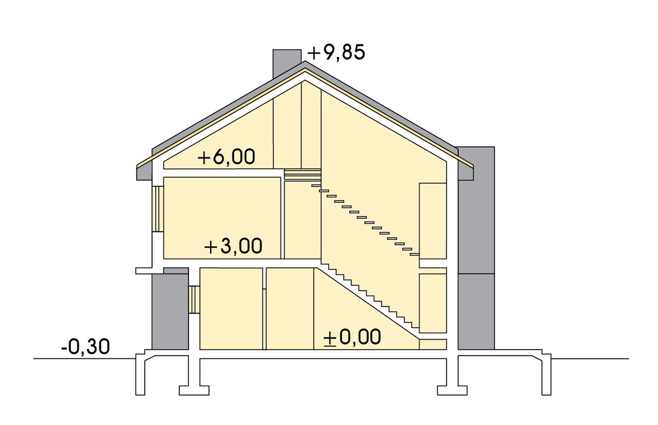 Strop: gęstożebrowy +drewniany. Ściany zewnętrzne: gazobeton 24cm + styropian 14cm. Pokrycie dachowe: dachówka ceramiczna. Okna połaciowe: Fakro.