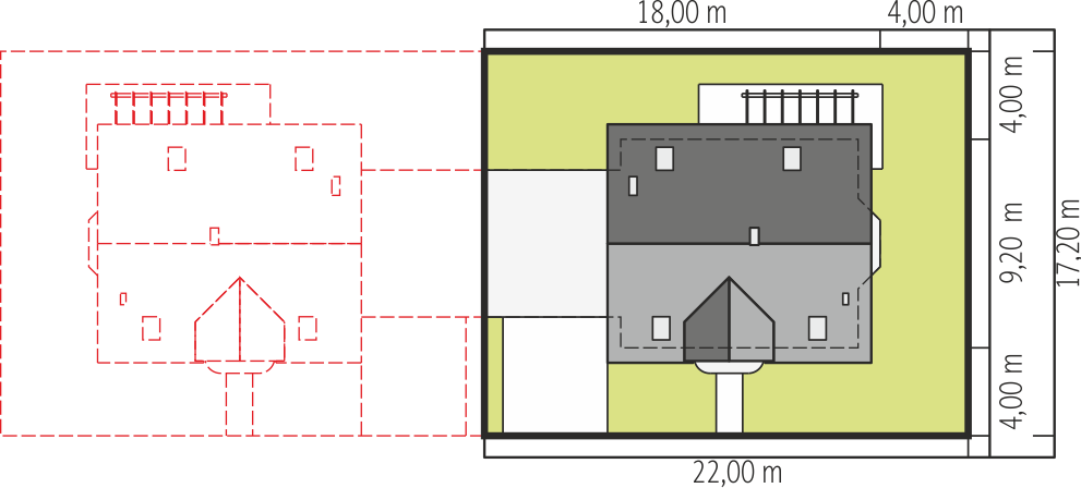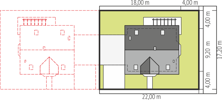 Graficzne opracowanie rzutów poglądowych widocznych na karcie projektu zostało wykonane przez Extradom.pl. Prezentowane przez Extradom.pl wizualizacje wykonane zostały przez autora projektu i należy poczytywać je jedynie za przykład i propozycję wykończenia, wizję architektoniczną autora projektu. Ostateczne wykończenie budynku może nastąpić na wiele sposobów. Szczegółowe rozwiązania zastosowane w oferowanej dokumentacji - w tym również ilość, lokalizacje i wygląd okien, drzwi, kominów - mogą w niewielkim stopniu różnić się od prezentowanej wizualizacji budynku.