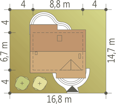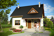 Graficzne opracowanie rzutów poglądowych widocznych na karcie projektu zostało wykonane przez Extradom.pl. Prezentowane przez Extradom.pl wizualizacje wykonane zostały przez autora projektu i należy poczytywać je jedynie za przykład i propozycję wykończenia, wizję architektoniczną autora projektu. Ostateczne wykończenie budynku może nastąpić na wiele sposobów. Szczegółowe rozwiązania zastosowane w oferowanej dokumentacji - w tym również ilość, lokalizacje i wygląd okien, drzwi, kominów - mogą w niewielkim stopniu różnić się od prezentowanej wizualizacji budynku.
