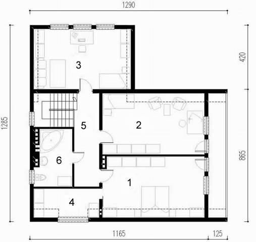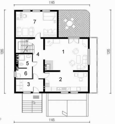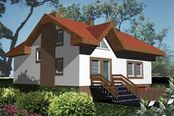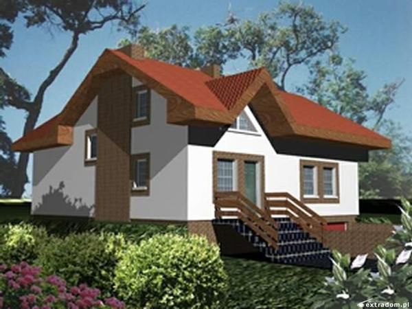 Graficzne opracowanie rzutów poglądowych widocznych na karcie projektu zostało wykonane przez Extradom.pl. Prezentowane przez Extradom.pl wizualizacje wykonane zostały przez autora projektu i należy poczytywać je jedynie za przykład i propozycję wykończenia, wizję architektoniczną autora projektu. Ostateczne wykończenie budynku może nastąpić na wiele sposobów. Szczegółowe rozwiązania zastosowane w oferowanej dokumentacji - w tym również ilość, lokalizacje i wygląd okien, drzwi, kominów - mogą w niewielkim stopniu różnić się od prezentowanej wizualizacji budynku.