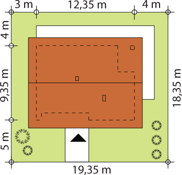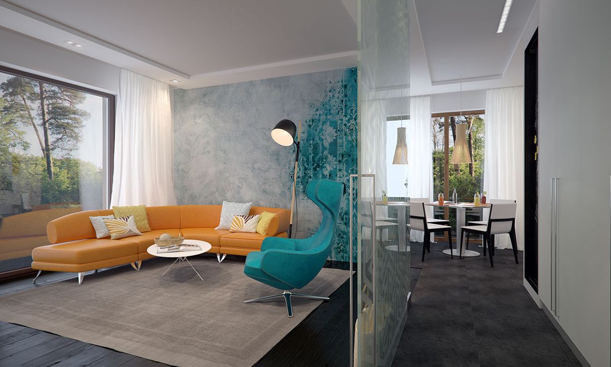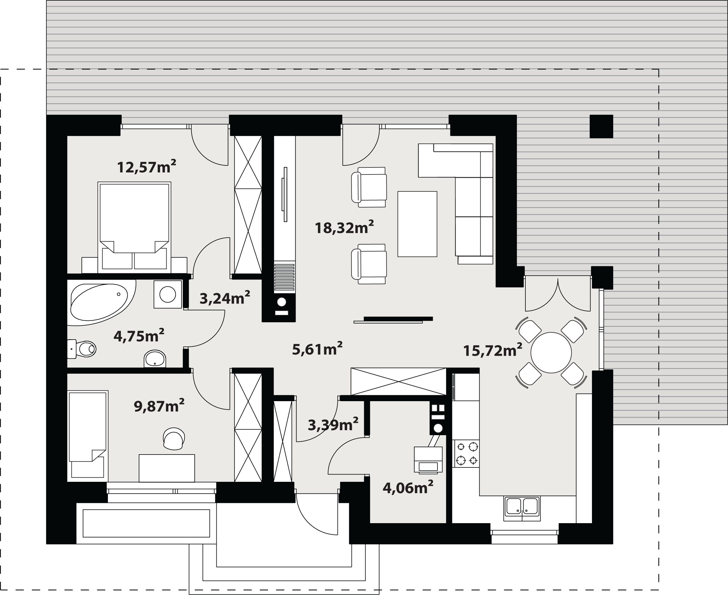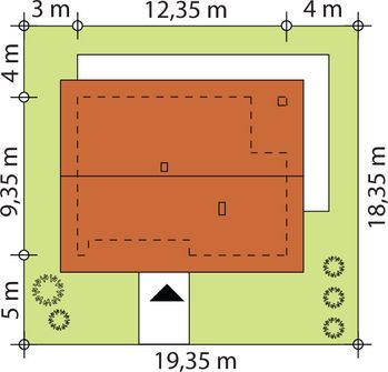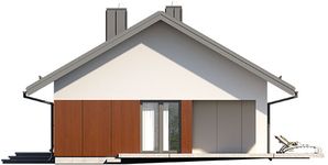 Graficzne opracowanie rzutów poglądowych widocznych na karcie projektu zostało wykonane przez Extradom.pl. Prezentowane przez Extradom.pl wizualizacje wykonane zostały przez autora projektu i należy poczytywać je jedynie za przykład i propozycję wykończenia, wizję architektoniczną autora projektu. Ostateczne wykończenie budynku może nastąpić na wiele sposobów. Szczegółowe rozwiązania zastosowane w oferowanej dokumentacji - w tym również ilość, lokalizacje i wygląd okien, drzwi, kominów - mogą w niewielkim stopniu różnić się od prezentowanej wizualizacji budynku.
