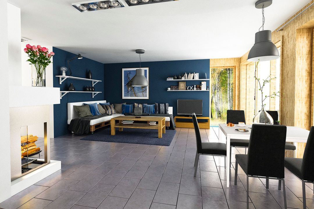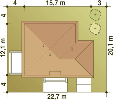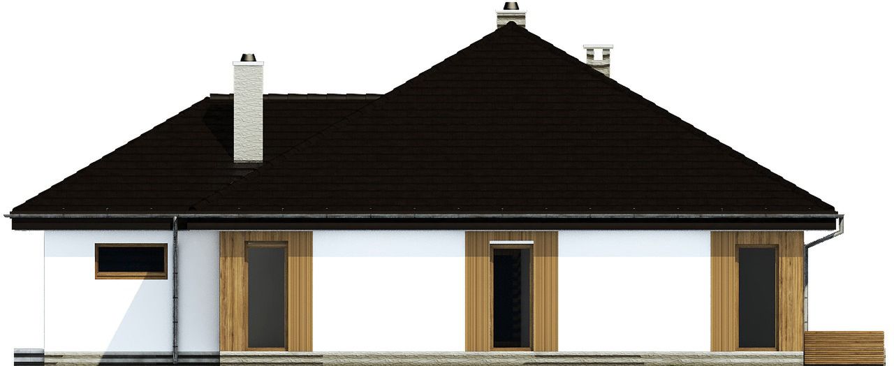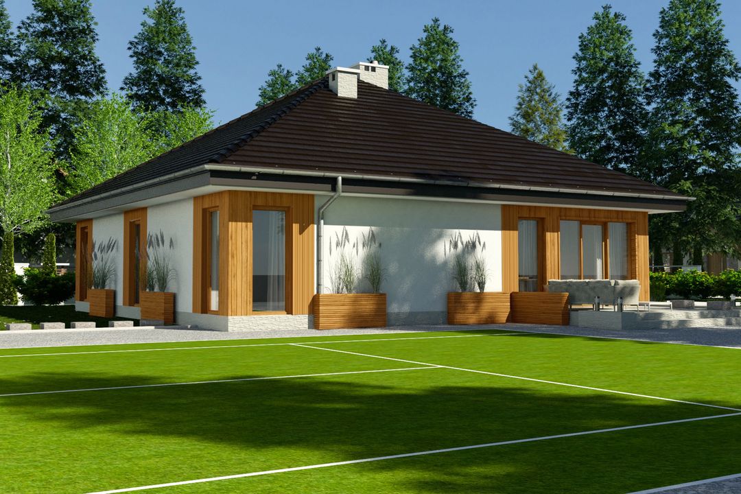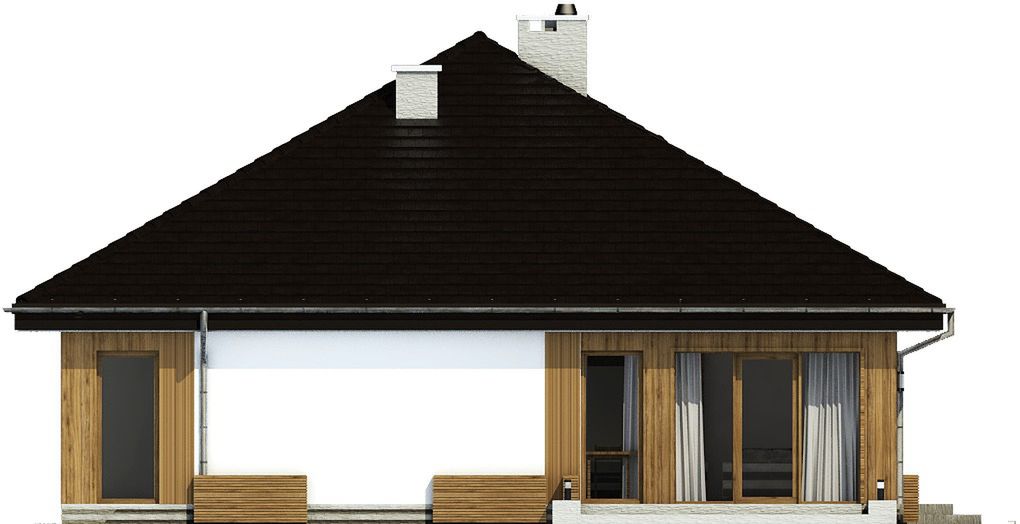 Graficzne opracowanie rzutów poglądowych widocznych na karcie projektu zostało wykonane przez Extradom.pl. Prezentowane przez Extradom.pl wizualizacje wykonane zostały przez autora projektu i należy poczytywać je jedynie za przykład i propozycję wykończenia, wizję architektoniczną autora projektu. Ostateczne wykończenie budynku może nastąpić na wiele sposobów. Szczegółowe rozwiązania zastosowane w oferowanej dokumentacji - w tym również ilość, lokalizacje i wygląd okien, drzwi, kominów - mogą w niewielkim stopniu różnić się od prezentowanej wizualizacji budynku.