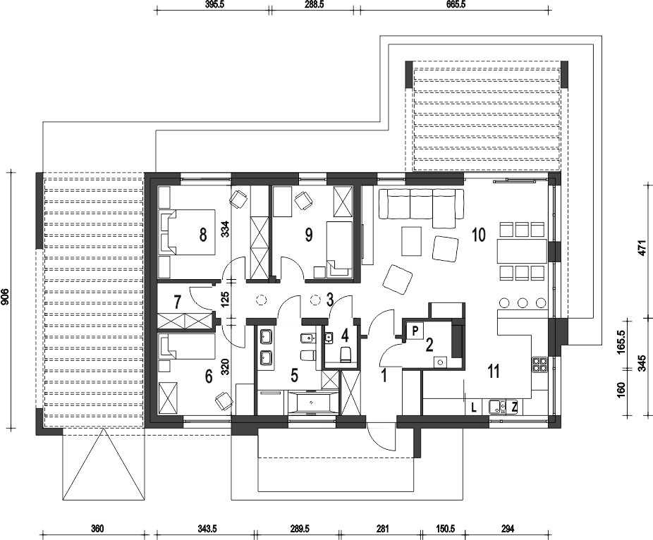 Kalikst z wiatą [A1] to projekt nowoczesnego domu parterowego, stworzony z myślą o komforcie trzy- lub czteroosobowej rodziny. Jego przemyślany układ funkcjonalny na jednej kondygnacji łączy otwartą przestrzeń dzienną z komfortową strefą nocną, oferując wygodę i bliskość natury w ekonomicznej formie.
