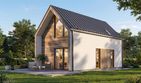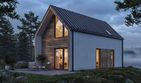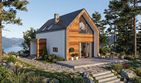 Graficzne opracowanie rzutów poglądowych widocznych na karcie projektu zostało wykonane przez Extradom.pl. Prezentowane przez Extradom.pl wizualizacje wykonane zostały przez autora projektu i należy poczytywać je jedynie za przykład i propozycję wykończenia, wizję architektoniczną autora projektu. Ostateczne wykończenie budynku może nastąpić na wiele sposobów. Szczegółowe rozwiązania zastosowane w oferowanej dokumentacji - w tym również ilość, lokalizacje i wygląd okien, drzwi, kominów - mogą w niewielkim stopniu różnić się od prezentowanej wizualizacji budynku.