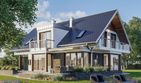 Graficzne opracowanie rzutów poglądowych widocznych na karcie projektu zostało wykonane przez Extradom.pl. Prezentowane przez Extradom.pl wizualizacje wykonane zostały przez autora projektu i należy poczytywać je jedynie za przykład i propozycję wykończenia, wizję architektoniczną autora projektu. Ostateczne wykończenie budynku może nastąpić na wiele sposobów. Szczegółowe rozwiązania zastosowane w oferowanej dokumentacji - w tym również ilość, lokalizacje i wygląd okien, drzwi, kominów - mogą w niewielkim stopniu różnić się od prezentowanej wizualizacji budynku.