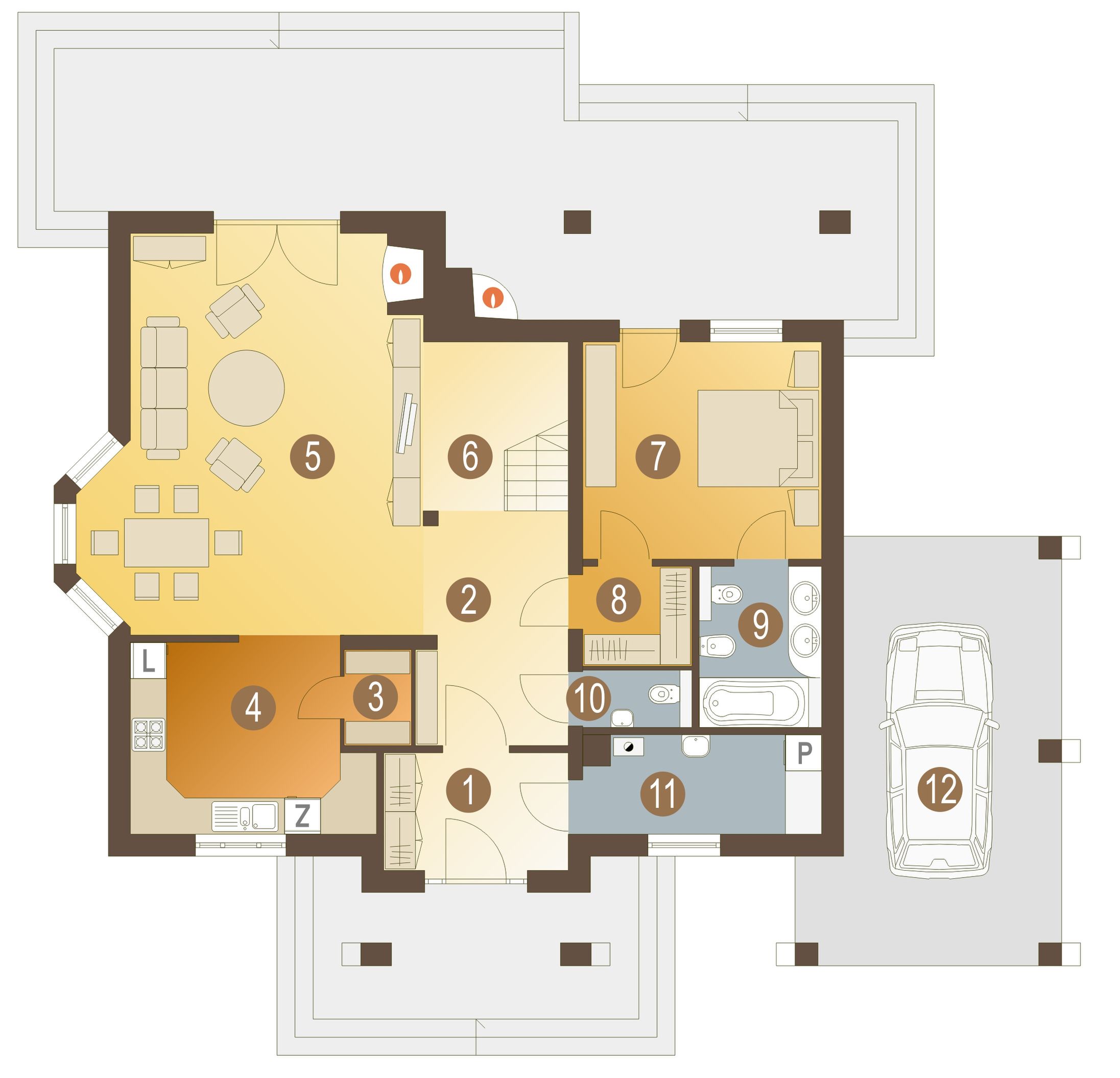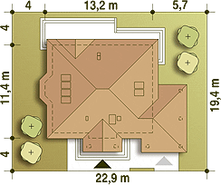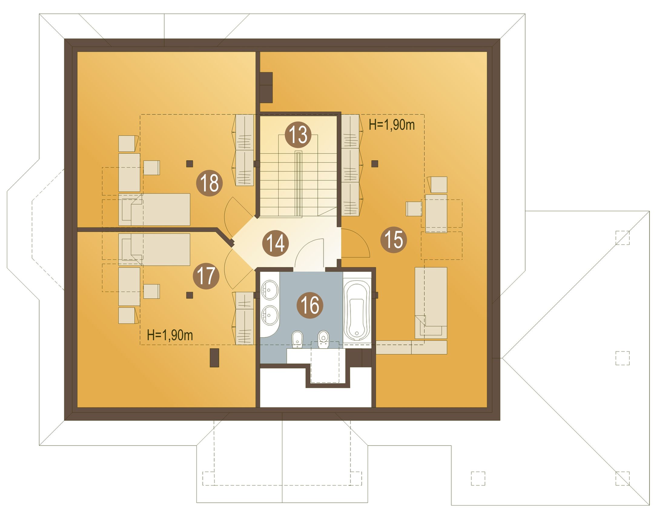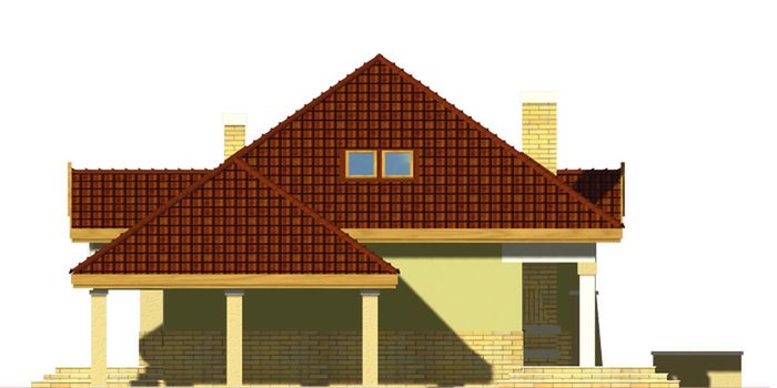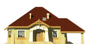 Graficzne opracowanie rzutów poglądowych widocznych na karcie projektu zostało wykonane przez Extradom.pl. Prezentowane przez Extradom.pl wizualizacje wykonane zostały przez autora projektu i należy poczytywać je jedynie za przykład i propozycję wykończenia, wizję architektoniczną autora projektu. Ostateczne wykończenie budynku może nastąpić na wiele sposobów. Szczegółowe rozwiązania zastosowane w oferowanej dokumentacji - w tym również ilość, lokalizacje i wygląd okien, drzwi, kominów - mogą w niewielkim stopniu różnić się od prezentowanej wizualizacji budynku.