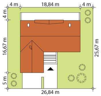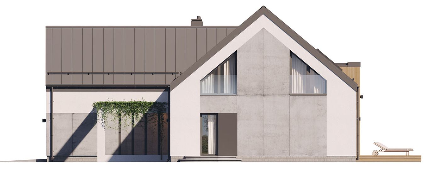 Graficzne opracowanie rzutów poglądowych widocznych na karcie projektu zostało wykonane przez Extradom.pl. Prezentowane przez Extradom.pl wizualizacje wykonane zostały przez autora projektu i należy poczytywać je jedynie za przykład i propozycję wykończenia, wizję architektoniczną autora projektu. Ostateczne wykończenie budynku może nastąpić na wiele sposobów. Szczegółowe rozwiązania zastosowane w oferowanej dokumentacji - w tym również ilość, lokalizacje i wygląd okien, drzwi, kominów - mogą w niewielkim stopniu różnić się od prezentowanej wizualizacji budynku.