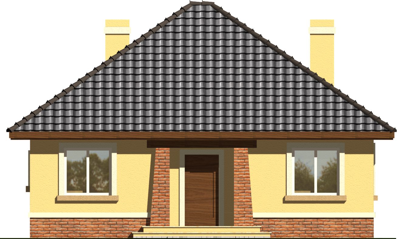 Domek jest wykończony z zewnątrz tynkiem, jedynie dla podkreślenia wejścia i osłony cokołów zastosowano płytki klinkierowe. Ściany są dwuwarstwowe z betonu komórkowego ocieplonego styropianem, strop i więźba wykonane z drewna. Pokrycie dachu dowolne, dachówką albo gontem lub blachodachówką po korektach projektu przez adaptującego. Można dowolnie zmieniać materiały pod wymagania inwestora.
