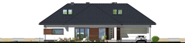 Graficzne opracowanie rzutów poglądowych widocznych na karcie projektu zostało wykonane przez Extradom.pl. Prezentowane przez Extradom.pl wizualizacje wykonane zostały przez autora projektu i należy poczytywać je jedynie za przykład i propozycję wykończenia, wizję architektoniczną autora projektu. Ostateczne wykończenie budynku może nastąpić na wiele sposobów. Szczegółowe rozwiązania zastosowane w oferowanej dokumentacji - w tym również ilość, lokalizacje i wygląd okien, drzwi, kominów - mogą w niewielkim stopniu różnić się od prezentowanej wizualizacji budynku.