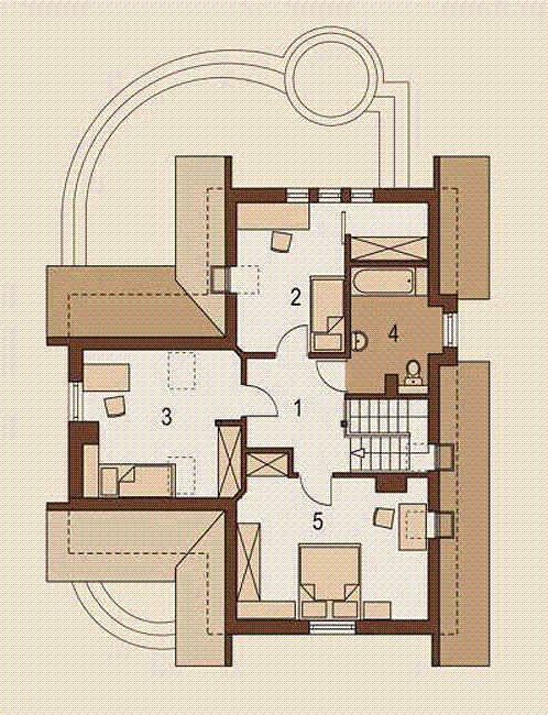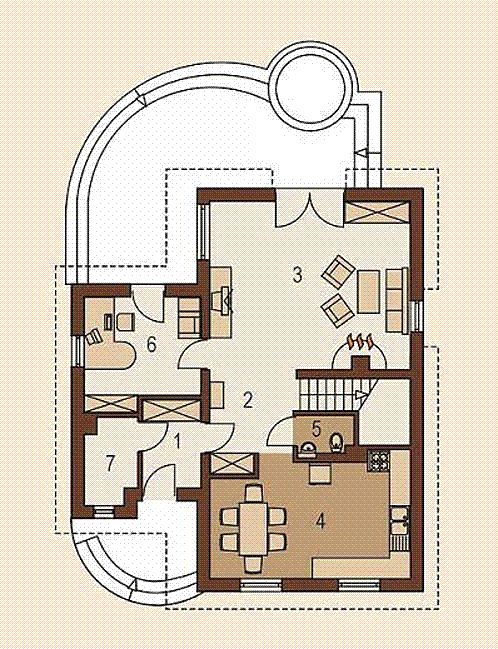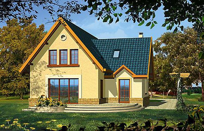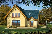 Graficzne opracowanie rzutów poglądowych widocznych na karcie projektu zostało wykonane przez Extradom.pl. Prezentowane przez Extradom.pl wizualizacje wykonane zostały przez autora projektu i należy poczytywać je jedynie za przykład i propozycję wykończenia, wizję architektoniczną autora projektu. Ostateczne wykończenie budynku może nastąpić na wiele sposobów. Szczegółowe rozwiązania zastosowane w oferowanej dokumentacji - w tym również ilość, lokalizacje i wygląd okien, drzwi, kominów - mogą w niewielkim stopniu różnić się od prezentowanej wizualizacji budynku.
