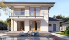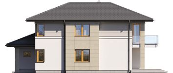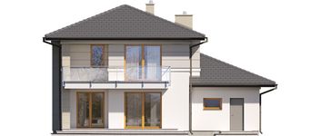 Graficzne opracowanie rzutów poglądowych widocznych na karcie projektu zostało wykonane przez Extradom.pl. Prezentowane przez Extradom.pl wizualizacje wykonane zostały przez autora projektu i należy poczytywać je jedynie za przykład i propozycję wykończenia, wizję architektoniczną autora projektu. Ostateczne wykończenie budynku może nastąpić na wiele sposobów. Szczegółowe rozwiązania zastosowane w oferowanej dokumentacji - w tym również ilość, lokalizacje i wygląd okien, drzwi, kominów - mogą w niewielkim stopniu różnić się od prezentowanej wizualizacji budynku.