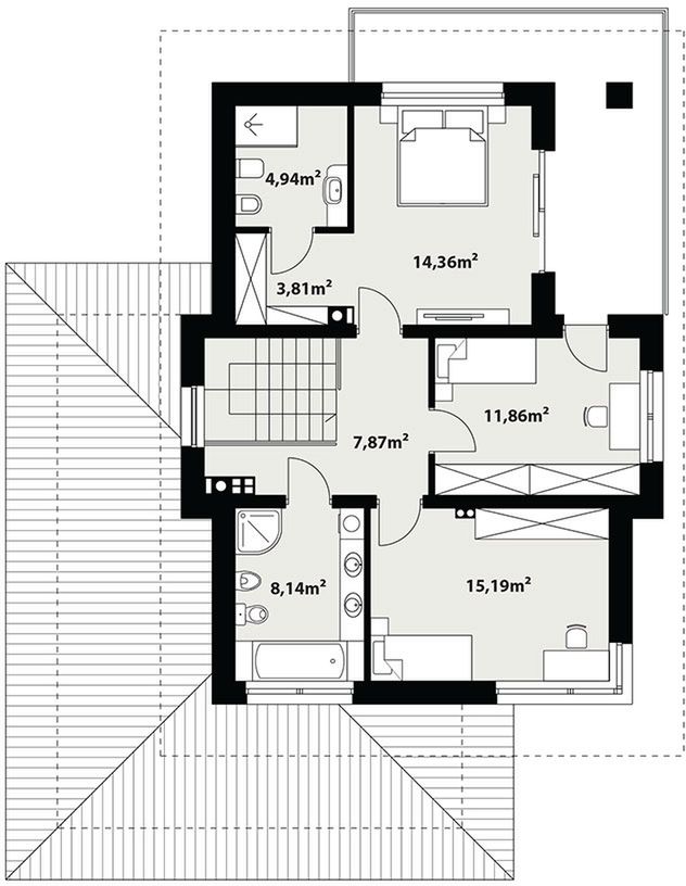 Graficzne opracowanie rzutów poglądowych widocznych na karcie projektu zostało wykonane przez Extradom.pl. Prezentowane przez Extradom.pl wizualizacje wykonane zostały przez autora projektu i należy poczytywać je jedynie za przykład i propozycję wykończenia, wizję architektoniczną autora projektu. Ostateczne wykończenie budynku może nastąpić na wiele sposobów. Szczegółowe rozwiązania zastosowane w oferowanej dokumentacji - w tym również ilość, lokalizacje i wygląd okien, drzwi, kominów - mogą w niewielkim stopniu różnić się od prezentowanej wizualizacji budynku.