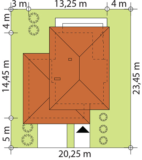 Dach: dachówka lub blachodachówka. Elewacje: tynk, płyta elewacyjna. Strop: żelbetowy. Ściany wewnętrzne: murowane. Ściany zewnętrzne: dwuwarstwowe, pustak ceramiczny, docieplony styropianem. Ogrzewanie: kocioł gazowy lub kocioł na paliwo stałe.