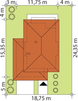 Graficzne opracowanie rzutów poglądowych widocznych na karcie projektu zostało wykonane przez Extradom.pl. Prezentowane przez Extradom.pl wizualizacje wykonane zostały przez autora projektu i należy poczytywać je jedynie za przykład i propozycję wykończenia, wizję architektoniczną autora projektu. Ostateczne wykończenie budynku może nastąpić na wiele sposobów. Szczegółowe rozwiązania zastosowane w oferowanej dokumentacji - w tym również ilość, lokalizacje i wygląd okien, drzwi, kominów - mogą w niewielkim stopniu różnić się od prezentowanej wizualizacji budynku.