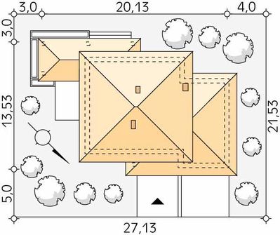 Graficzne opracowanie rzutów poglądowych widocznych na karcie projektu zostało wykonane przez Extradom.pl. Prezentowane przez Extradom.pl wizualizacje wykonane zostały przez autora projektu i należy poczytywać je jedynie za przykład i propozycję wykończenia, wizję architektoniczną autora projektu. Ostateczne wykończenie budynku może nastąpić na wiele sposobów. Szczegółowe rozwiązania zastosowane w oferowanej dokumentacji - w tym również ilość, lokalizacje i wygląd okien, drzwi, kominów - mogą w niewielkim stopniu różnić się od prezentowanej wizualizacji budynku.