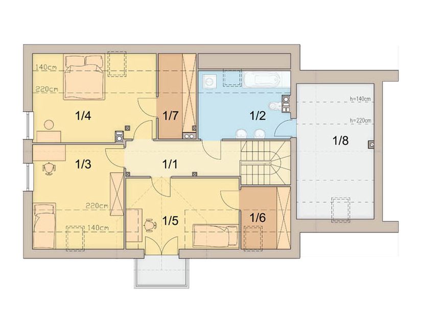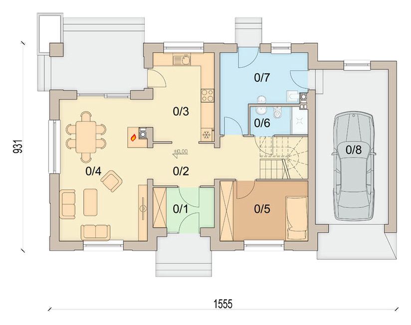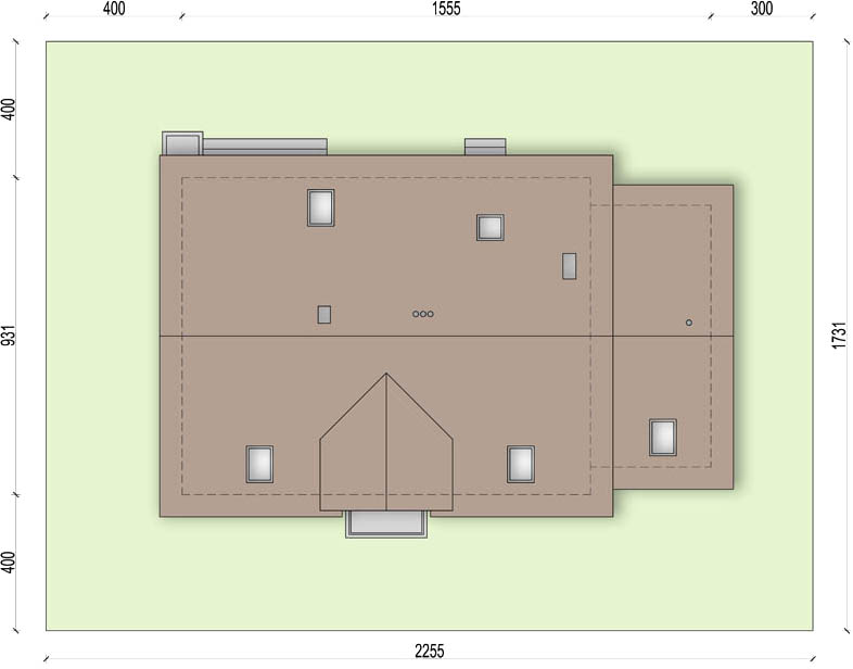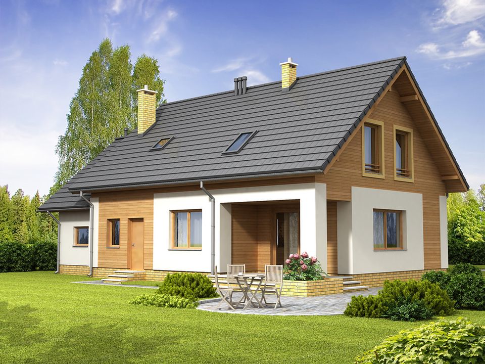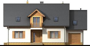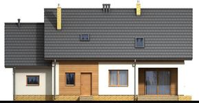 Graficzne opracowanie rzutów poglądowych widocznych na karcie projektu zostało wykonane przez Extradom.pl. Prezentowane przez Extradom.pl wizualizacje wykonane zostały przez autora projektu i należy poczytywać je jedynie za przykład i propozycję wykończenia, wizję architektoniczną autora projektu. Ostateczne wykończenie budynku może nastąpić na wiele sposobów. Szczegółowe rozwiązania zastosowane w oferowanej dokumentacji - w tym również ilość, lokalizacje i wygląd okien, drzwi, kominów - mogą w niewielkim stopniu różnić się od prezentowanej wizualizacji budynku.