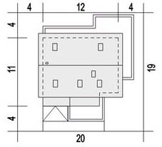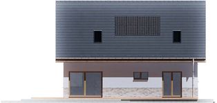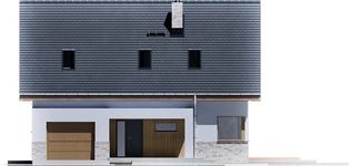 Graficzne opracowanie rzutów poglądowych widocznych na karcie projektu zostało wykonane przez Extradom.pl. Prezentowane przez Extradom.pl wizualizacje wykonane zostały przez autora projektu i należy poczytywać je jedynie za przykład i propozycję wykończenia, wizję architektoniczną autora projektu. Ostateczne wykończenie budynku może nastąpić na wiele sposobów. Szczegółowe rozwiązania zastosowane w oferowanej dokumentacji - w tym również ilość, lokalizacje i wygląd okien, drzwi, kominów - mogą w niewielkim stopniu różnić się od prezentowanej wizualizacji budynku.