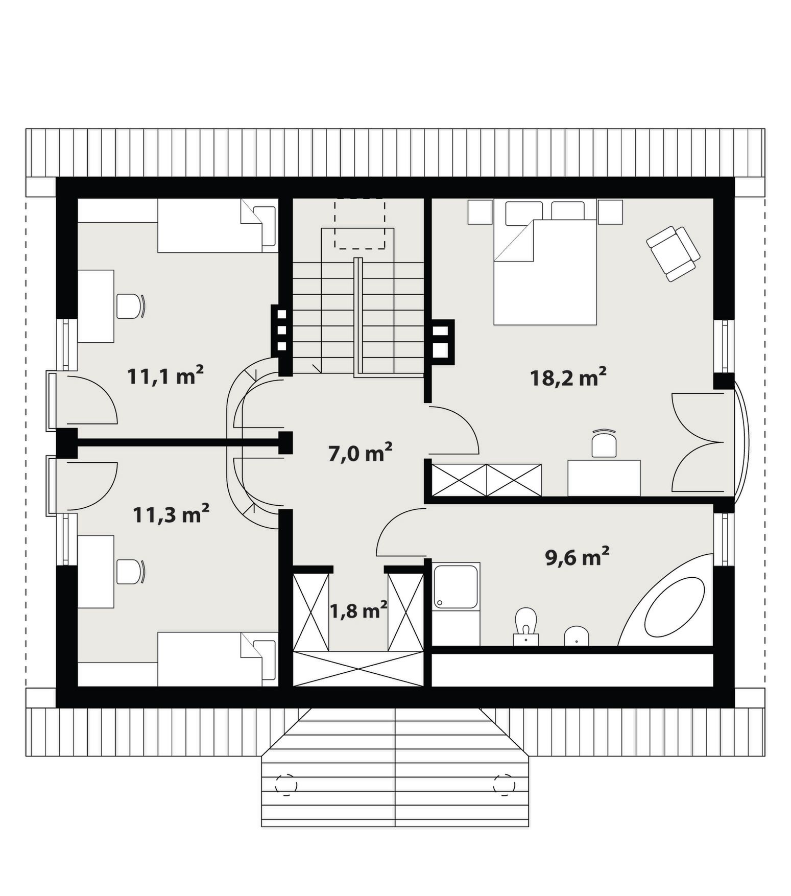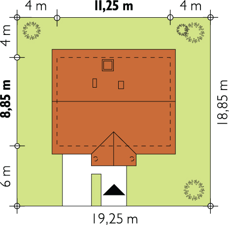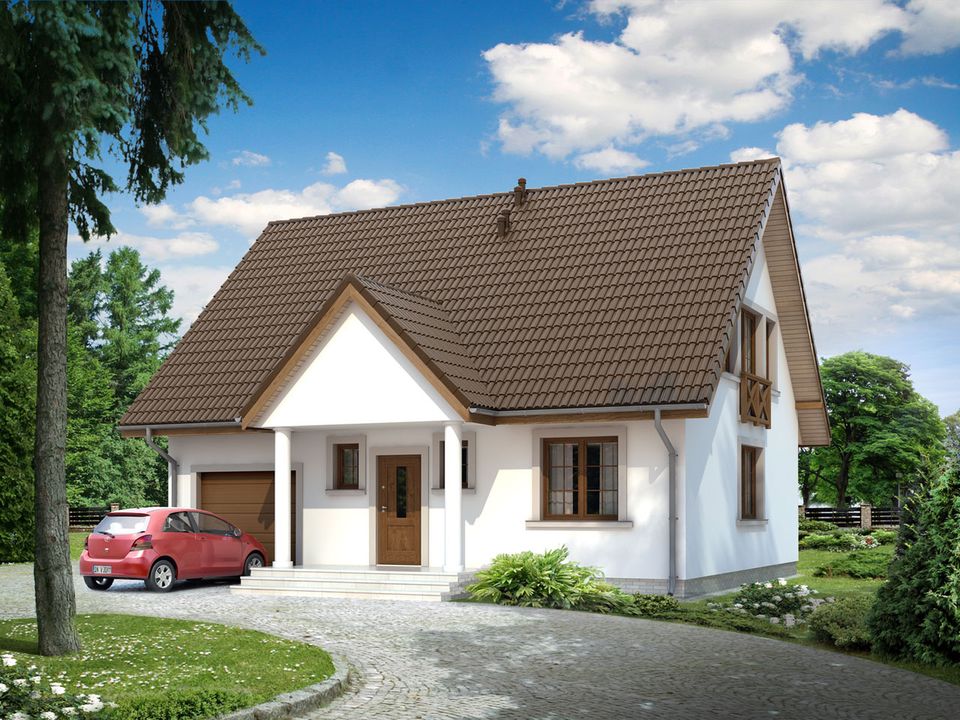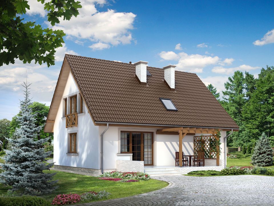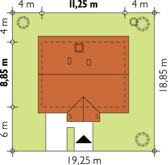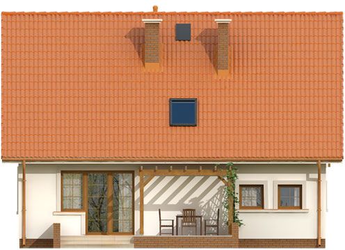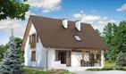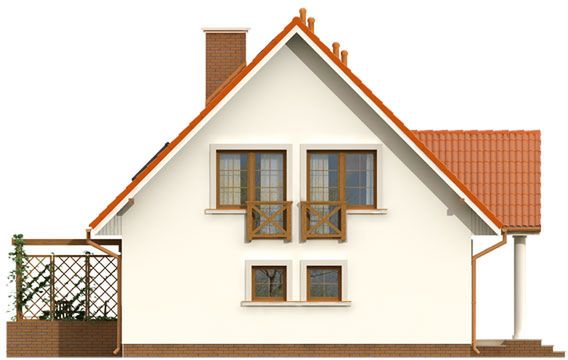 Graficzne opracowanie rzutów poglądowych widocznych na karcie projektu zostało wykonane przez Extradom.pl. Prezentowane przez Extradom.pl wizualizacje wykonane zostały przez autora projektu i należy poczytywać je jedynie za przykład i propozycję wykończenia, wizję architektoniczną autora projektu. Ostateczne wykończenie budynku może nastąpić na wiele sposobów. Szczegółowe rozwiązania zastosowane w oferowanej dokumentacji - w tym również ilość, lokalizacje i wygląd okien, drzwi, kominów - mogą w niewielkim stopniu różnić się od prezentowanej wizualizacji budynku.
