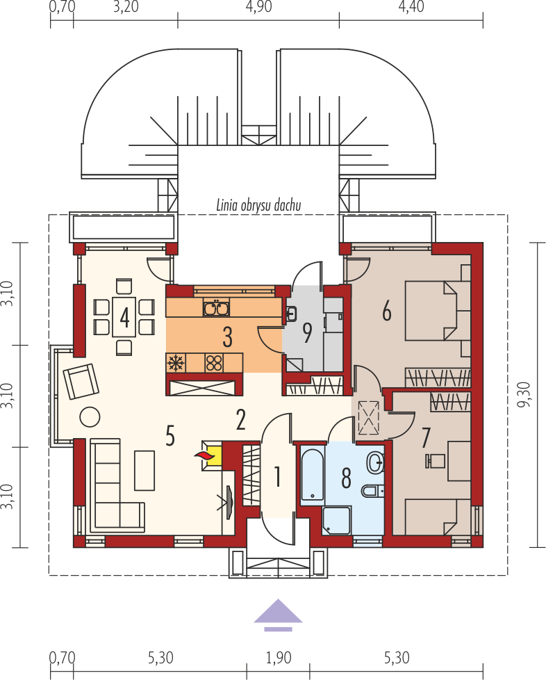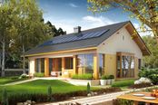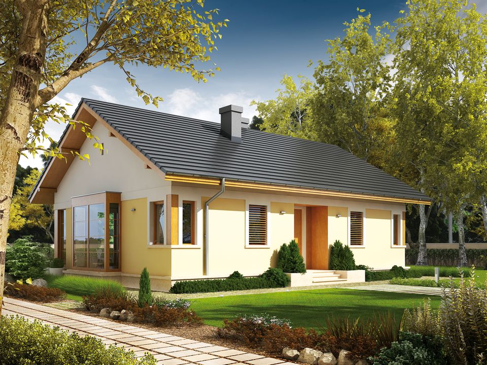 Graficzne opracowanie rzutów poglądowych widocznych na karcie projektu zostało wykonane przez Extradom.pl. Prezentowane przez Extradom.pl wizualizacje wykonane zostały przez autora projektu i należy poczytywać je jedynie za przykład i propozycję wykończenia, wizję architektoniczną autora projektu. Ostateczne wykończenie budynku może nastąpić na wiele sposobów. Szczegółowe rozwiązania zastosowane w oferowanej dokumentacji - w tym również ilość, lokalizacje i wygląd okien, drzwi, kominów - mogą w niewielkim stopniu różnić się od prezentowanej wizualizacji budynku.