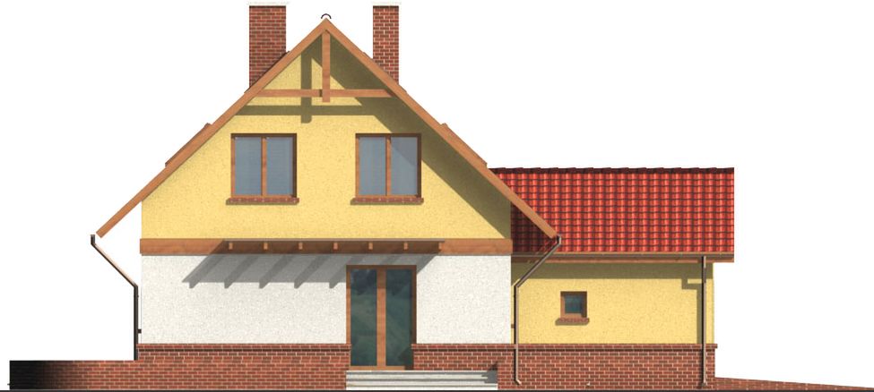 Graficzne opracowanie rzutów poglądowych widocznych na karcie projektu zostało wykonane przez Extradom.pl. Prezentowane przez Extradom.pl wizualizacje wykonane zostały przez autora projektu i należy poczytywać je jedynie za przykład i propozycję wykończenia, wizję architektoniczną autora projektu. Ostateczne wykończenie budynku może nastąpić na wiele sposobów. Szczegółowe rozwiązania zastosowane w oferowanej dokumentacji - w tym również ilość, lokalizacje i wygląd okien, drzwi, kominów - mogą w niewielkim stopniu różnić się od prezentowanej wizualizacji budynku.