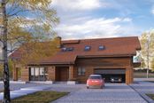 Graficzne opracowanie rzutów poglądowych widocznych na karcie projektu zostało wykonane przez Extradom.pl. Prezentowane przez Extradom.pl wizualizacje wykonane zostały przez autora projektu i należy poczytywać je jedynie za przykład i propozycję wykończenia, wizję architektoniczną autora projektu. Ostateczne wykończenie budynku może nastąpić na wiele sposobów. Szczegółowe rozwiązania zastosowane w oferowanej dokumentacji - w tym również ilość, lokalizacje i wygląd okien, drzwi, kominów - mogą w niewielkim stopniu różnić się od prezentowanej wizualizacji budynku.