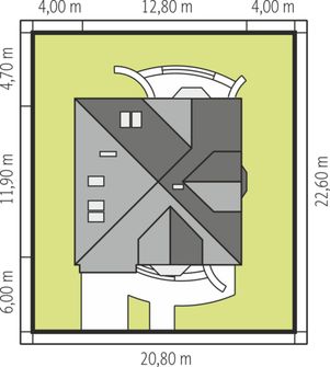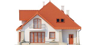 Graficzne opracowanie rzutów poglądowych widocznych na karcie projektu zostało wykonane przez Extradom.pl. Prezentowane przez Extradom.pl wizualizacje wykonane zostały przez autora projektu i należy poczytywać je jedynie za przykład i propozycję wykończenia, wizję architektoniczną autora projektu. Ostateczne wykończenie budynku może nastąpić na wiele sposobów. Szczegółowe rozwiązania zastosowane w oferowanej dokumentacji - w tym również ilość, lokalizacje i wygląd okien, drzwi, kominów - mogą w niewielkim stopniu różnić się od prezentowanej wizualizacji budynku.