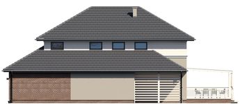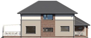 Graficzne opracowanie rzutów poglądowych widocznych na karcie projektu zostało wykonane przez Extradom.pl. Prezentowane przez Extradom.pl wizualizacje wykonane zostały przez autora projektu i należy poczytywać je jedynie za przykład i propozycję wykończenia, wizję architektoniczną autora projektu. Ostateczne wykończenie budynku może nastąpić na wiele sposobów. Szczegółowe rozwiązania zastosowane w oferowanej dokumentacji - w tym również ilość, lokalizacje i wygląd okien, drzwi, kominów - mogą w niewielkim stopniu różnić się od prezentowanej wizualizacji budynku.