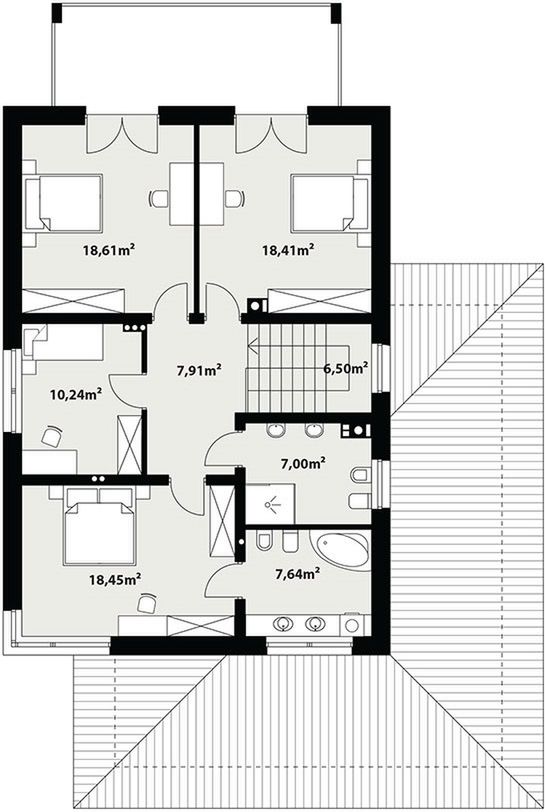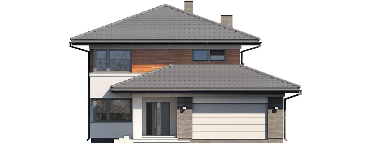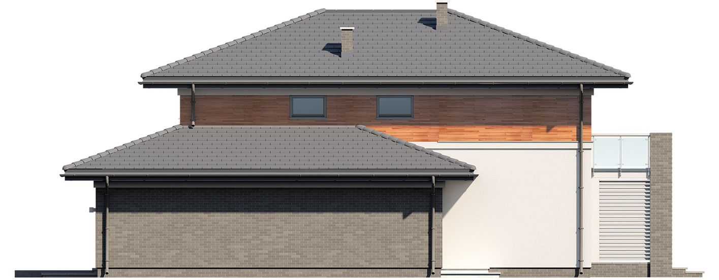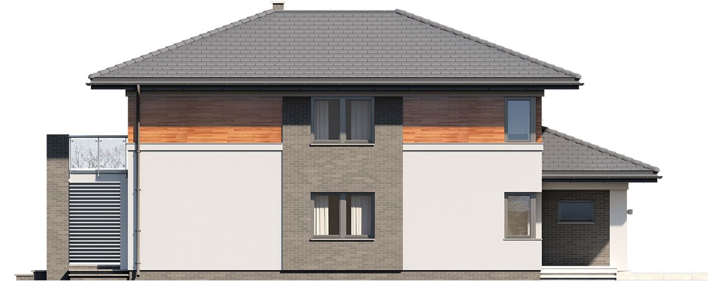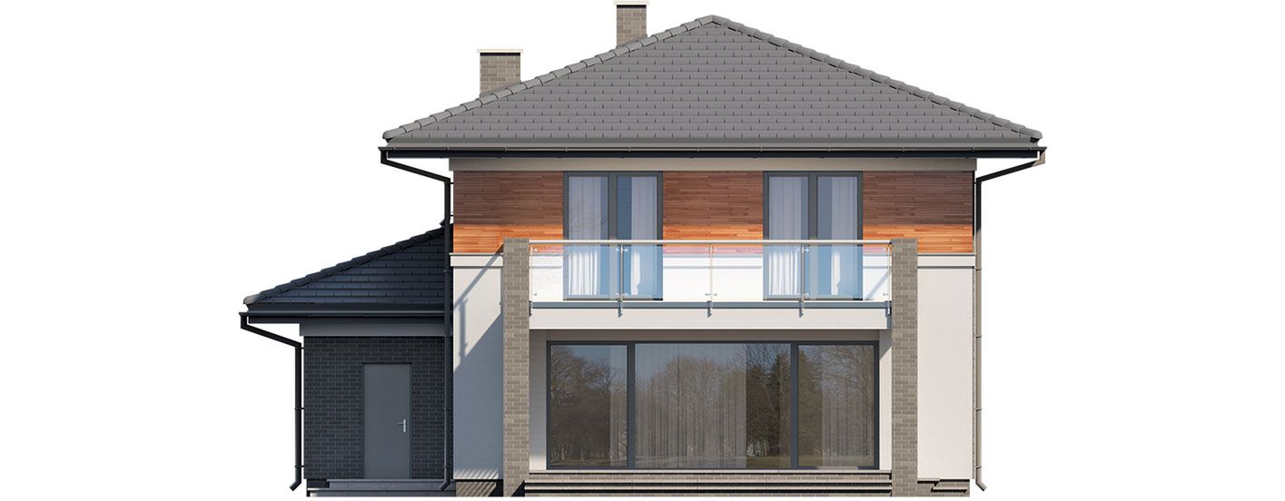 Graficzne opracowanie rzutów poglądowych widocznych na karcie projektu zostało wykonane przez Extradom.pl. Prezentowane przez Extradom.pl wizualizacje wykonane zostały przez autora projektu i należy poczytywać je jedynie za przykład i propozycję wykończenia, wizję architektoniczną autora projektu. Ostateczne wykończenie budynku może nastąpić na wiele sposobów. Szczegółowe rozwiązania zastosowane w oferowanej dokumentacji - w tym również ilość, lokalizacje i wygląd okien, drzwi, kominów - mogą w niewielkim stopniu różnić się od prezentowanej wizualizacji budynku.
