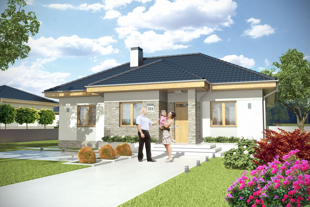 Fundamenty: betonowe. Ściany zewnętrzne: porotherm+styropian termo organika. Ściany wewnętrzne: porotherm. Rodzaj stropu: drewniany. Elewacje: tynk strukturalny/ okładzina kamienna. Pokrycie dachu: dachówka cem. lub cer.