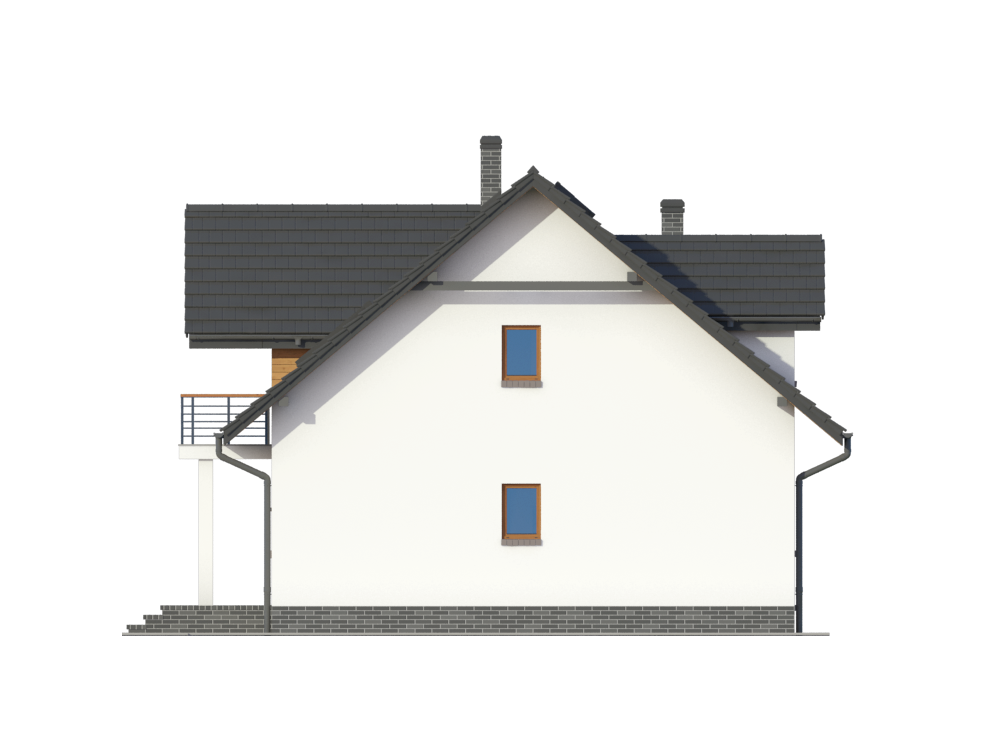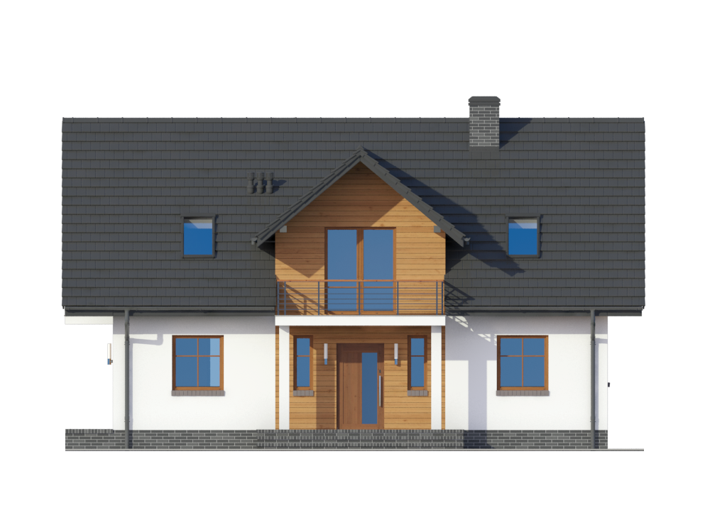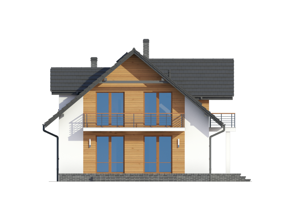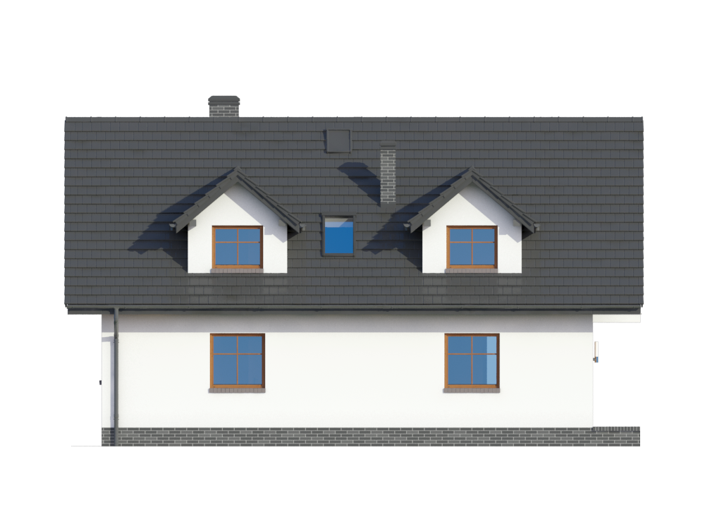 Graficzne opracowanie rzutów poglądowych widocznych na karcie projektu zostało wykonane przez Extradom.pl. Prezentowane przez Extradom.pl wizualizacje wykonane zostały przez autora projektu i należy poczytywać je jedynie za przykład i propozycję wykończenia, wizję architektoniczną autora projektu. Ostateczne wykończenie budynku może nastąpić na wiele sposobów. Szczegółowe rozwiązania zastosowane w oferowanej dokumentacji - w tym również ilość, lokalizacje i wygląd okien, drzwi, kominów - mogą w niewielkim stopniu różnić się od prezentowanej wizualizacji budynku.