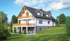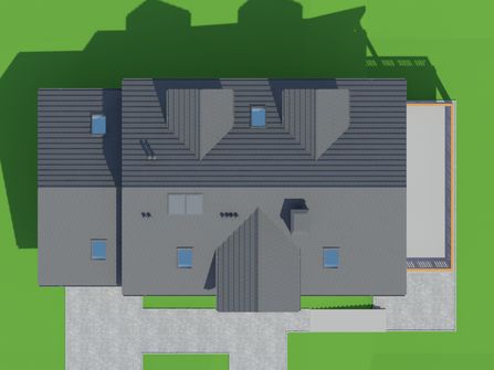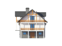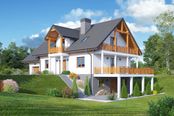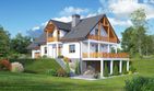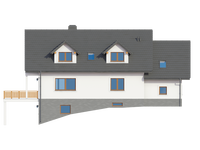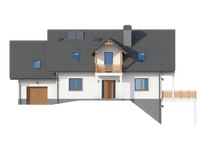 Graficzne opracowanie rzutów poglądowych widocznych na karcie projektu zostało wykonane przez Extradom.pl. Prezentowane przez Extradom.pl wizualizacje wykonane zostały przez autora projektu i należy poczytywać je jedynie za przykład i propozycję wykończenia, wizję architektoniczną autora projektu. Ostateczne wykończenie budynku może nastąpić na wiele sposobów. Szczegółowe rozwiązania zastosowane w oferowanej dokumentacji - w tym również ilość, lokalizacje i wygląd okien, drzwi, kominów - mogą w niewielkim stopniu różnić się od prezentowanej wizualizacji budynku.