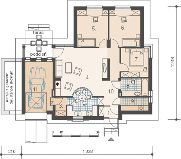 Graficzne opracowanie rzutów poglądowych widocznych na karcie projektu zostało wykonane przez Extradom.pl. Prezentowane przez Extradom.pl wizualizacje wykonane zostały przez autora projektu i należy poczytywać je jedynie za przykład i propozycję wykończenia, wizję architektoniczną autora projektu. Ostateczne wykończenie budynku może nastąpić na wiele sposobów. Szczegółowe rozwiązania zastosowane w oferowanej dokumentacji - w tym również ilość, lokalizacje i wygląd okien, drzwi, kominów - mogą w niewielkim stopniu różnić się od prezentowanej wizualizacji budynku.