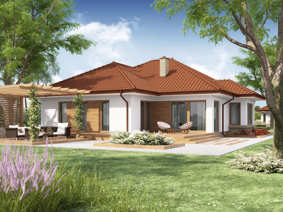Dość długo szukaliśmy projektu, który odpowiadałby nam pod każdym względem. Przede wszystkim chcieliśmy, aby był to budynek parterowy jednak zwracaliśmy uwagę również na inne aspekty. Zależało nam na funkcjonalności wewnątrz domu oraz wyglądzie zewnętrznym. Bryła projektu domu Kasandra WRW1101 przykuwa wzrok, a układ pomieszczeń bardzo przypadł nam do gustu. Zdecydowaliśmy się więc właśnie na niego. Całość budowaliśmy według projektu, także nie mieliśmy żadnych problemów, jeśli chodzi o realizację. Budynek wymurowaliśmy z pustaków ceramicznych Porotherm i ociepliliśmy zgodnie z zaleceniami styropianem TERMO ORGANIKA. Jedyną zmianą było zrobienie monolitycznego betonowego stropu zamiast drewnianych belek. Dom ogrzewam pompą ciepła, gdyż nie mamy dostępu do innego źródła. Chcieliśmy ogrzewać gazem ziemnym, jednak nie mieliśmy możliwości jego podłączenia. Muszę przyznać, że jestem z tego powodu trochę zawiedziony, ponieważ inwestycja w pompę była bardzo kosztowna, ale pieca na opał nawet nie brałem pod uwagę. Jedyną modyfikacją, która wprowadziłem do projektu domu parterowego Kasandra WRW1101, było usunięcie pralni. Dzięki temu mogliśmy powiększyć garaż, na czym bardziej nam zależało. Nasz dom stoi na działce w ten sposób, iż taras znajduje się od strony południowej. Z racji takiego położenia wnętrze budynku jest bardzo dobrze oświetlone i jest duży odzysk energii słonecznej dzięki wielu przeszkleniom. W pierwszej chwili myśleliśmy, że tych okien jest nawet za dużo, jednak nic nie usuwaliśmy i jesteśmy z tego zadowoleni. Metraż naszego domu w zupełności wystarcza dla naszej 4-osobowej rodziny i w 100% zaspokaja nasze potrzeby pod tym względem. Uważam, że większa liczba pomieszczeń byłaby zbędna dla naszej czwórki. Gdybym miał jeszcze raz realizować projekt domu Kasandra WRW1101 to myślę, że nic bym nie zmienił. Bardzo cieszymy się z naszego wyboru i jesteśmy zadowoleni z efektu wizualnego po jego wybudowaniu. Polecam i pozdrawiam.
