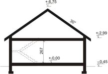 Graficzne opracowanie rzutów poglądowych widocznych na karcie projektu zostało wykonane przez Extradom.pl. Prezentowane przez Extradom.pl wizualizacje wykonane zostały przez autora projektu i należy poczytywać je jedynie za przykład i propozycję wykończenia, wizję architektoniczną autora projektu. Ostateczne wykończenie budynku może nastąpić na wiele sposobów. Szczegółowe rozwiązania zastosowane w oferowanej dokumentacji - w tym również ilość, lokalizacje i wygląd okien, drzwi, kominów - mogą w niewielkim stopniu różnić się od prezentowanej wizualizacji budynku.