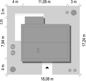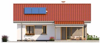 Graficzne opracowanie rzutów poglądowych widocznych na karcie projektu zostało wykonane przez Extradom.pl. Prezentowane przez Extradom.pl wizualizacje wykonane zostały przez autora projektu i należy poczytywać je jedynie za przykład i propozycję wykończenia, wizję architektoniczną autora projektu. Ostateczne wykończenie budynku może nastąpić na wiele sposobów. Szczegółowe rozwiązania zastosowane w oferowanej dokumentacji - w tym również ilość, lokalizacje i wygląd okien, drzwi, kominów - mogą w niewielkim stopniu różnić się od prezentowanej wizualizacji budynku.