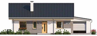 Graficzne opracowanie rzutów poglądowych widocznych na karcie projektu zostało wykonane przez Extradom.pl. Prezentowane przez Extradom.pl wizualizacje wykonane zostały przez autora projektu i należy poczytywać je jedynie za przykład i propozycję wykończenia, wizję architektoniczną autora projektu. Ostateczne wykończenie budynku może nastąpić na wiele sposobów. Szczegółowe rozwiązania zastosowane w oferowanej dokumentacji - w tym również ilość, lokalizacje i wygląd okien, drzwi, kominów - mogą w niewielkim stopniu różnić się od prezentowanej wizualizacji budynku.