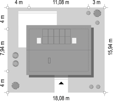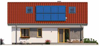 Graficzne opracowanie rzutów poglądowych widocznych na karcie projektu zostało wykonane przez Extradom.pl. Prezentowane przez Extradom.pl wizualizacje wykonane zostały przez autora projektu i należy poczytywać je jedynie za przykład i propozycję wykończenia, wizję architektoniczną autora projektu. Ostateczne wykończenie budynku może nastąpić na wiele sposobów. Szczegółowe rozwiązania zastosowane w oferowanej dokumentacji - w tym również ilość, lokalizacje i wygląd okien, drzwi, kominów - mogą w niewielkim stopniu różnić się od prezentowanej wizualizacji budynku.