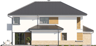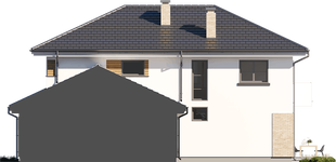 Graficzne opracowanie rzutów poglądowych widocznych na karcie projektu zostało wykonane przez Extradom.pl. Prezentowane przez Extradom.pl wizualizacje wykonane zostały przez autora projektu i należy poczytywać je jedynie za przykład i propozycję wykończenia, wizję architektoniczną autora projektu. Ostateczne wykończenie budynku może nastąpić na wiele sposobów. Szczegółowe rozwiązania zastosowane w oferowanej dokumentacji - w tym również ilość, lokalizacje i wygląd okien, drzwi, kominów - mogą w niewielkim stopniu różnić się od prezentowanej wizualizacji budynku.