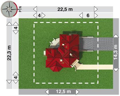 Graficzne opracowanie rzutów poglądowych widocznych na karcie projektu zostało wykonane przez Extradom.pl. Prezentowane przez Extradom.pl wizualizacje wykonane zostały przez autora projektu i należy poczytywać je jedynie za przykład i propozycję wykończenia, wizję architektoniczną autora projektu. Ostateczne wykończenie budynku może nastąpić na wiele sposobów. Szczegółowe rozwiązania zastosowane w oferowanej dokumentacji - w tym również ilość, lokalizacje i wygląd okien, drzwi, kominów - mogą w niewielkim stopniu różnić się od prezentowanej wizualizacji budynku.