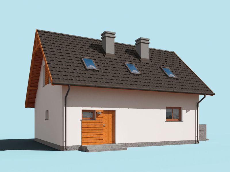 Graficzne opracowanie rzutów poglądowych widocznych na karcie projektu zostało wykonane przez Extradom.pl. Prezentowane przez Extradom.pl wizualizacje wykonane zostały przez autora projektu i należy poczytywać je jedynie za przykład i propozycję wykończenia, wizję architektoniczną autora projektu. Ostateczne wykończenie budynku może nastąpić na wiele sposobów. Szczegółowe rozwiązania zastosowane w oferowanej dokumentacji - w tym również ilość, lokalizacje i wygląd okien, drzwi, kominów - mogą w niewielkim stopniu różnić się od prezentowanej wizualizacji budynku.